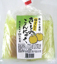 | 商品特徴 | 秩父産柚子を使用したさしみこんにゃく。スライスしてあり、開封後添付の無添加からし酢みそでいただけます。 |